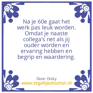 Na je 60e aan het werk.