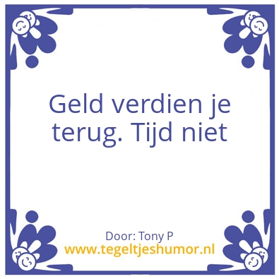 Geld verdien je terug. Tijd ni