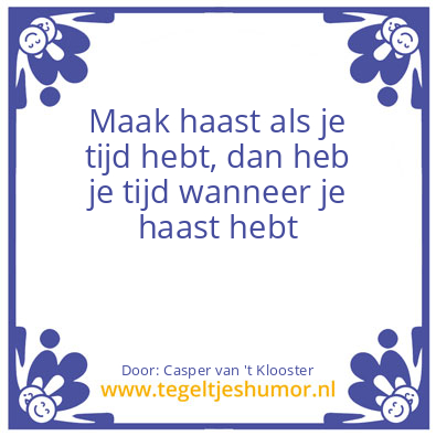 Maak haast als je tijd hebt,